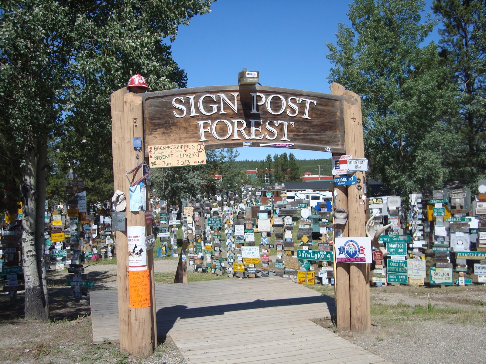 In Watson Lake, BC there is a Sign Forest. We put up a Home of Sliced Bread, Chillicothe, MO sign. Tim's mom and dad put up a sign during one of their three trips to Alaska. There are so many signs that we couldn't find John and Wilma's.